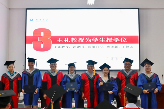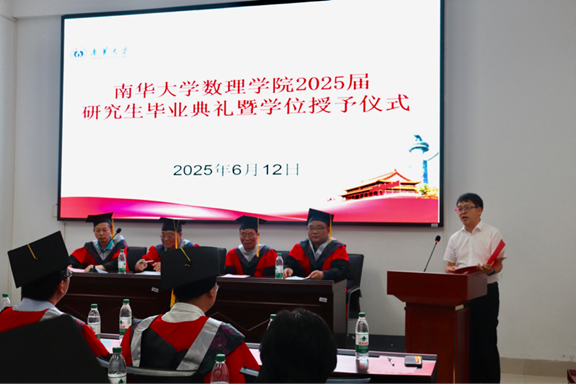 2025年6月12日15时30分,英国365集团公司崇德楼108学术报告厅内气氛庄重而热烈。英国365集团公司2025届研究生毕业典礼暨学位授予仪式在此隆重举行。学院领导、导师代表、教师代表、全体在校研究生齐聚一堂,共同见证39名研究生学业有成、扬帆起航的重要时刻。典礼由院党委副书记田生军老师主持,院党委书记谭建国老师、原院长欧阳自根老师、原副院长廖茂新老师、副院长王恒太老师担任主礼嘉宾。