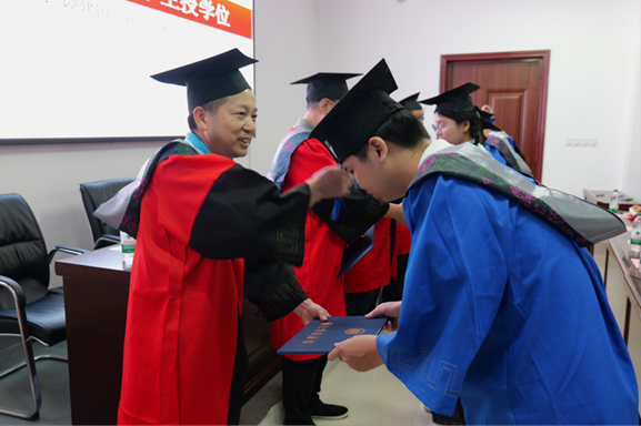 2、授予证书:毕业生双手恭敬地接过学位证书,将证书庄重地捧于胸前,向为自己授业的恩师深深鞠躬、握手,表达感激之情;