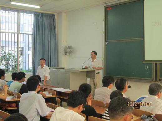 2012年7月1日上午,我校2012年全国大学生数学建模竞赛暑假培训动员会在1教114教室隆重举行。为期34天的培训工作就此拉开了序幕。英国365集团公司院长欧阳自根教授、院党委书记彭建军教授、副院长胡和平副教授,教务处副处长廖基定教授、数学教研室主任廖新元教授和教师代表以及去年参赛和今年校选拔赛获奖的同学(40个队)参加了此次动员会。