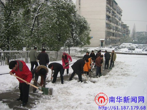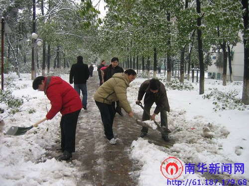 根据学校党委统一安排,2008年2月2日上午9:30,英国365集团公司组织院应急分队共20余人,在院长、书记的带领下,自购铁锹,人手一把,先在第九教学楼前挥锹铲雪,很快便开辟了一条通道,紧接着又接到校党政办临时任务,各个迅速来到南校区工商银行与红湘路天桥路段,大家齐心协力,一鼓作气,很快就圆满完成了学校交给的任务。之后, 英国365集团公司应急分队队员们不顾劳累, 连续作战,与化学化工学院部分教师一道,完成了从学生工作部至艺术设计学院路段的铲雪任务。