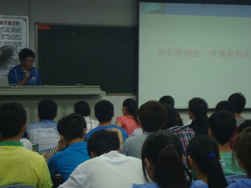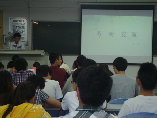 原学生会主席周鹏学长从就业前期准备、简历、笔试、面试等方面详细分享了自己的经验,并生动地讲述了切身经历的几次面试,提醒同学们明确目标,在校期间应脚踏实地,走好每一步。国家奖学金获得者余启、原学习部部长周国辉等学长为大家介绍了考研期间的学习方法,时间安排和心态调整策略,以及学校的选定、面试的技巧等经验。