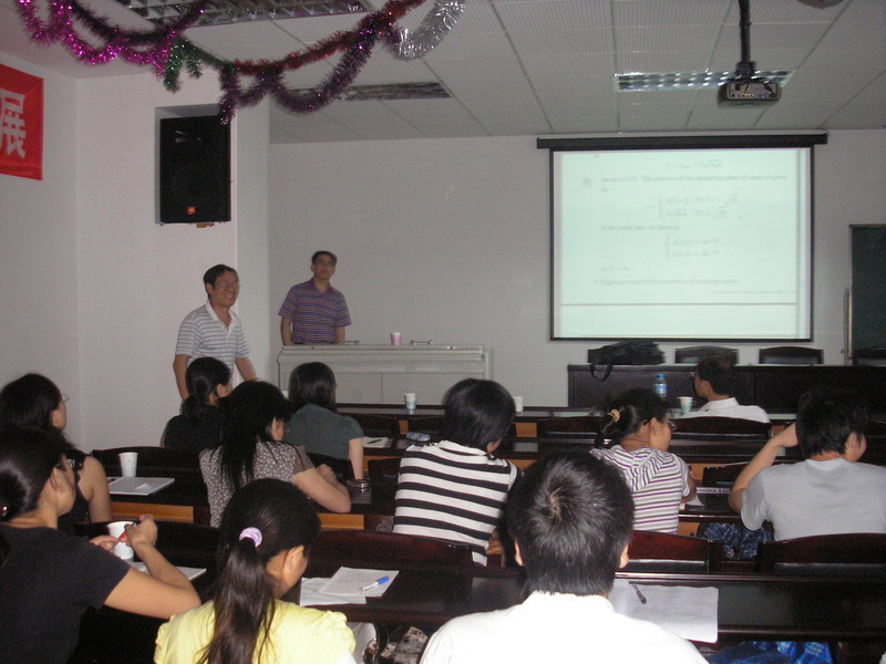 在报告中欧春华教授通过趋向性模型及趋向性填充模型的历史背景、最小波速及波速的确定、行波解存在性的严格证明、数值模拟、讨论五部分详细讲解了研究趋向性填充模型行波解存在性的方法和意义;唐先华教授也通过二阶Hamiltonian系统的变分结构与临界点、具周期性系数的二阶Hamiltonian系统的同宿轨、具非周期性系数的二阶Hamiltonian系统的同宿轨(I)、具非周期性系数的二阶Hamiltonian系统的同宿轨(II)四部分详细讲解了研究二阶Hamiltonian系统的同宿轨的方法和主要结论。报告最后,热情的欧教授和唐教授还对老师和学生提出的问题给出了详细解答。