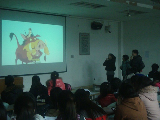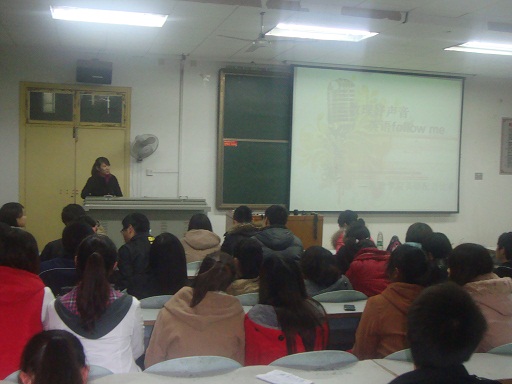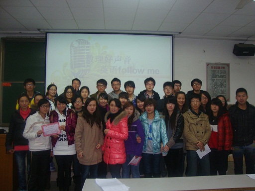 2012年12月1日晚7:30,英国365集团公司在第九教学楼401举办“数理好声音,英语follow me”英语配音电影比赛。出席的评委嘉宾有瞿亚妮老师、袁艳玲老师、学生会主席孙勇、学习部部长李宏波。英国365集团公司全体同学参加了本次活动,主持人由陈盈盈、付云涛两位同学担任。