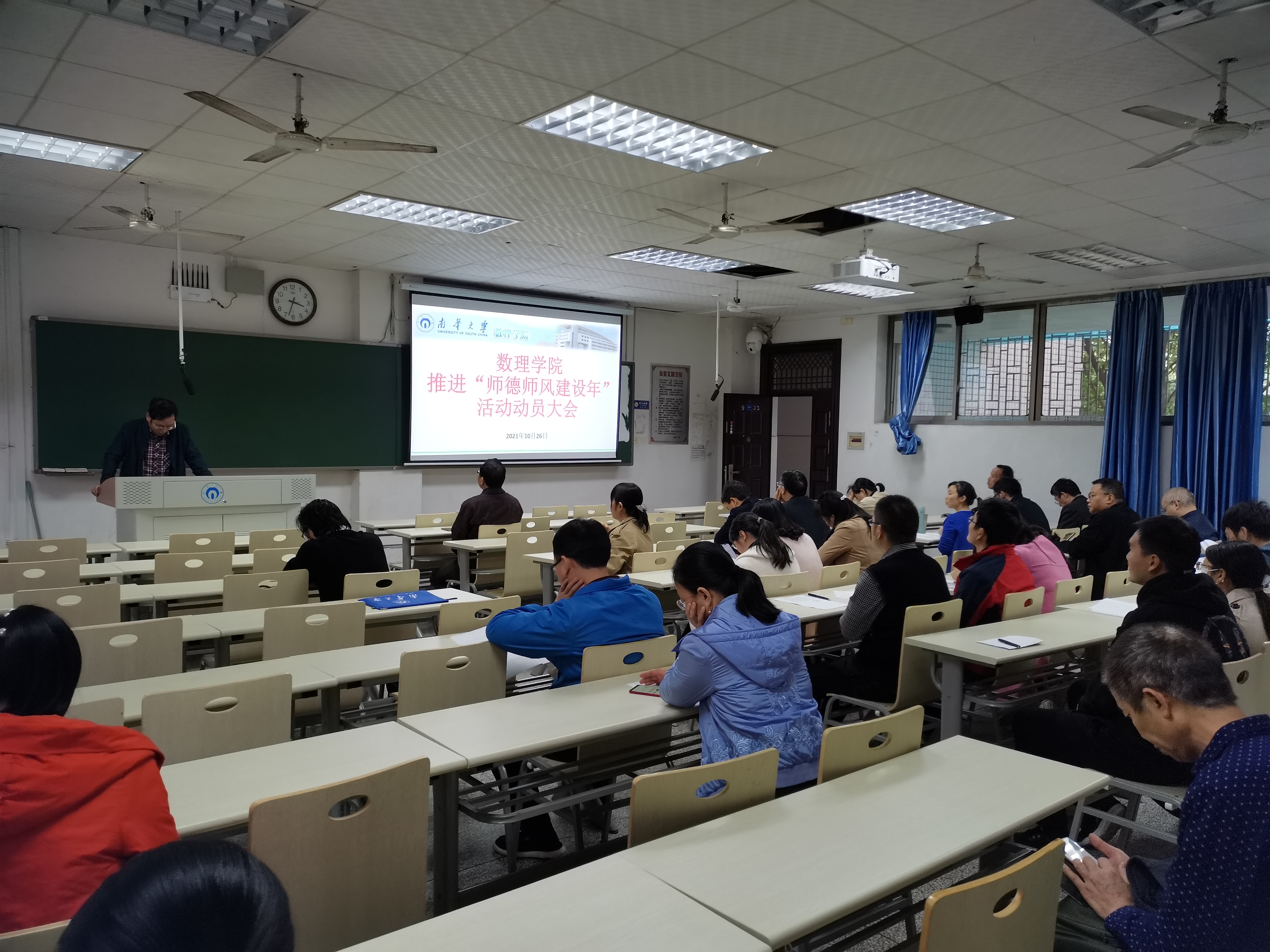 2021年10月26日,欧阳自根书记组织本院没有课的教师开展了英国365集团公司2021年第七次教职工理论学习暨推进“师德师风建设年”活动动员大会。