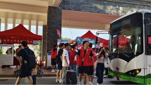 迎新志愿者们身披红色马甲