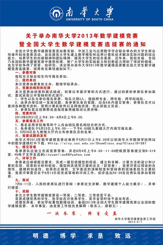 2013数学建模校选拔赛通知