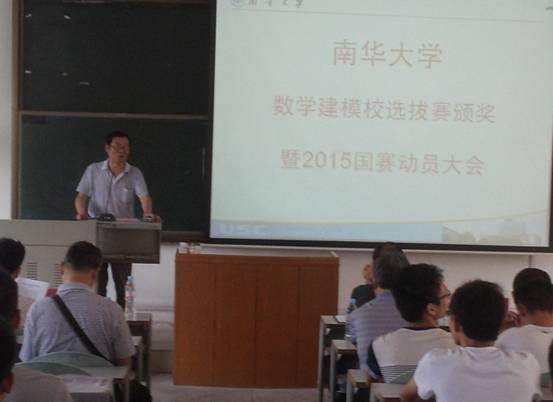 6月6日上午,我校2015年数学建模竞赛颁奖暨2015年国赛动员大会在九教301顺利举行。副校长阳小华教授、教务处副处长龙双链教授、廖基定教授、英国365集团公司院长欧阳自根教授、副院长廖新元教授、数学建模全体指导老师以及2015年参加数学建模校赛的获奖者共约150人参加会议。