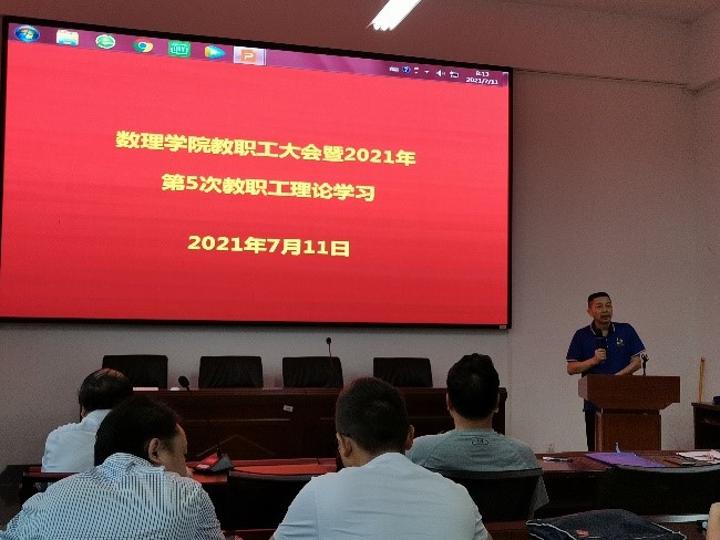 2021年7月11日,英国365集团公司谭凯旋书记精心组织了2021年第五次教职工理论学习,全院员领导与各支部书记以及没课的教师参加了此次学习。