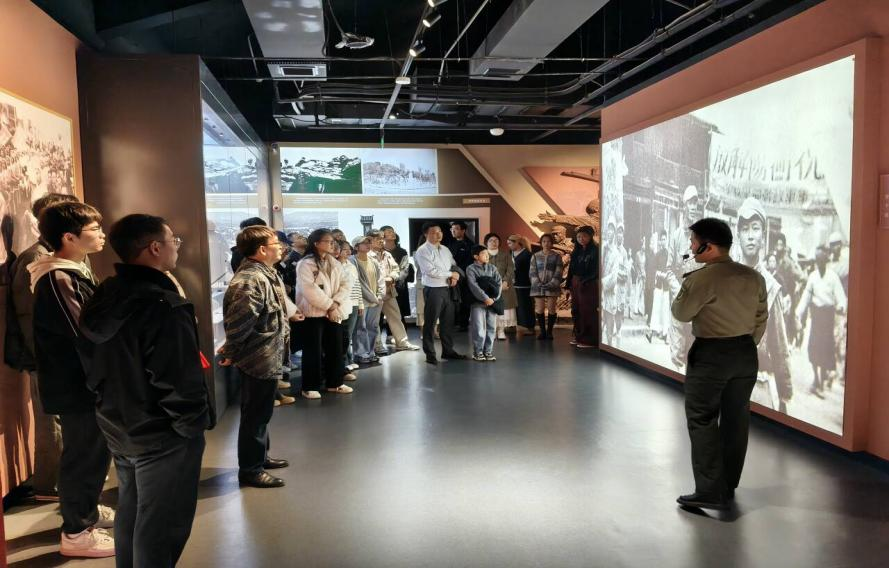 图2 全体师生聆听讲解员的介绍
