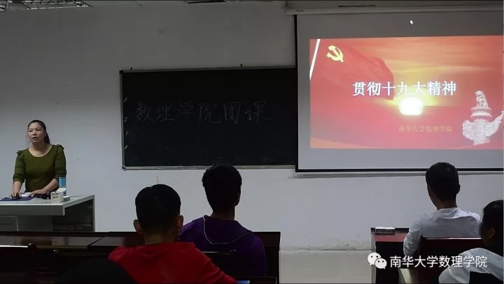 首先是辅导员陈小兰老师为我们介绍了党十九大召开的基本内容,关于习近平总书记提出的“四个全面”基本方针。并且学院十分关注学生在学习中的表现及成长历程,并寄语所有学生:一是要坚定信仰,树立正确的价值观念;二是要坚定信念确立正确的人生目标;三是刻苦学习,掌握好相关的专业知识。