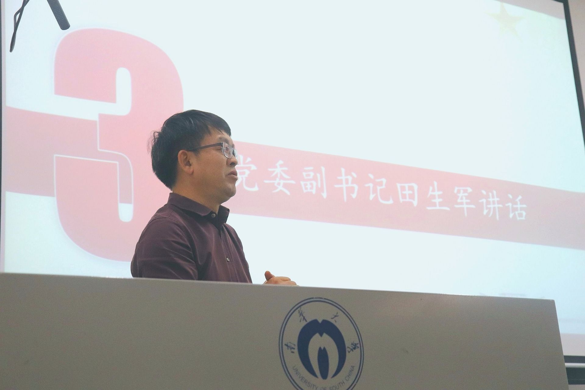 大会最后一项,党委副书记田生军发表讲话。田书记对于大运会做出了几点要求:第一,由体育部统筹组织与管理运动员;第二,做好英国365集团公司大运会的宣传工作;第三,积极跟进大运会的后勤工作,保障运动员的需求,确保他们的安全。在学习方面,田书记指出了学生学习中出现的各类问题,并提出了一些具体的改进措施,希望以此增强学生学习的兴趣,从而提高成绩。田书记认为在这个过程中班委至关重要,应鼓励学生们多参加文化、科研活动,促进学生的全面发展。