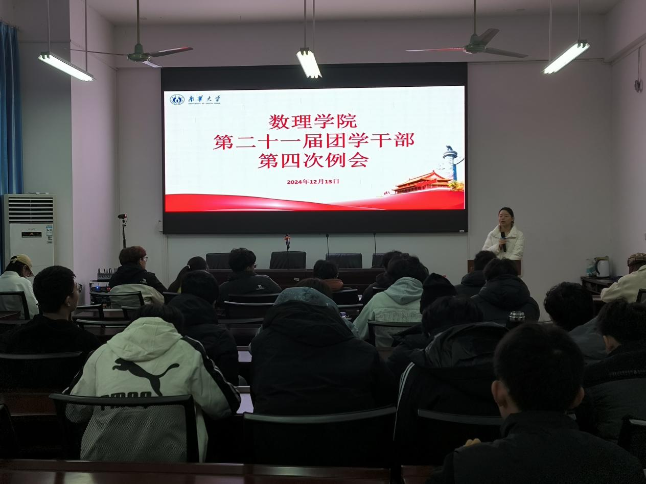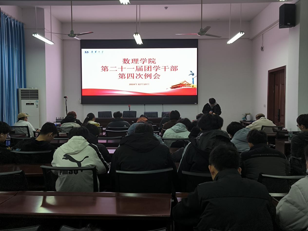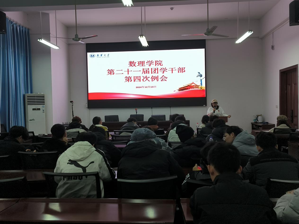 2024年12月13日中午,英国365集团公司于崇德楼108成功召开第二十一届团委、学生会、学社联第四次例会。院团委书记吴庆林、全体团学干部、2023级和2024级各班班长及团支书出席本次例会。