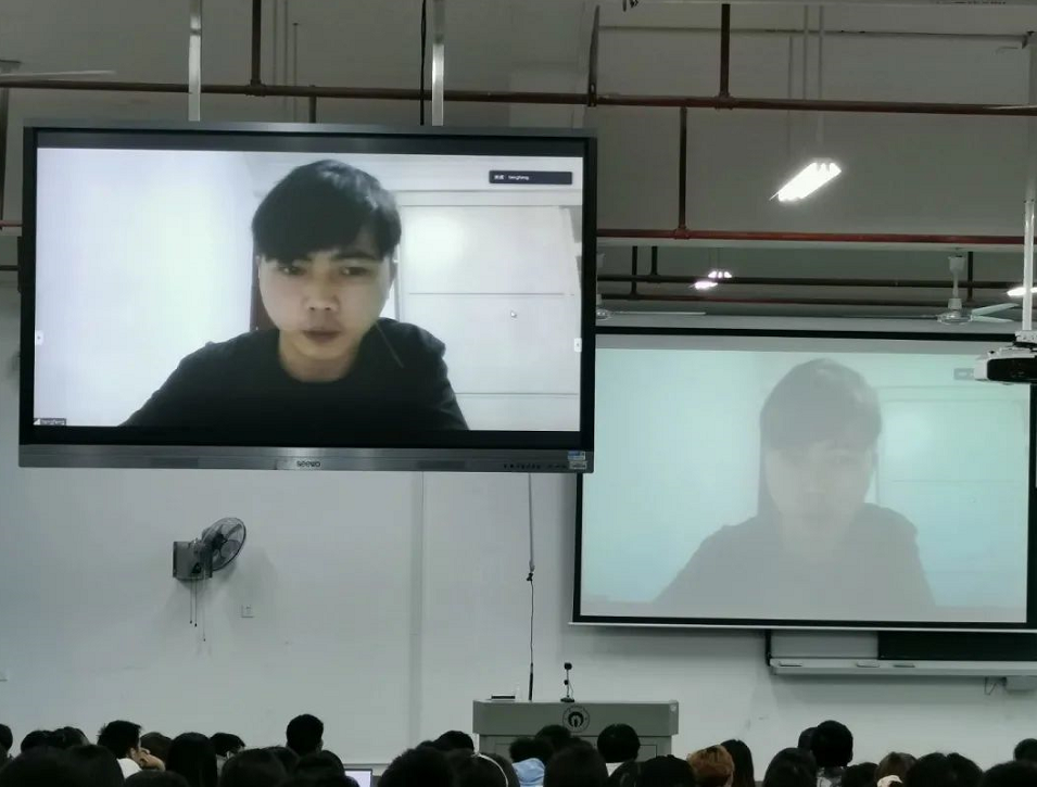 首先,16级罗滕峰同学通过线上视频通话,进行就业分享,阐述了他自己秋招时的曲折经历,讲述了学历在工作竞争上与名校学生的差距,提出只有技术好才是硬道理。